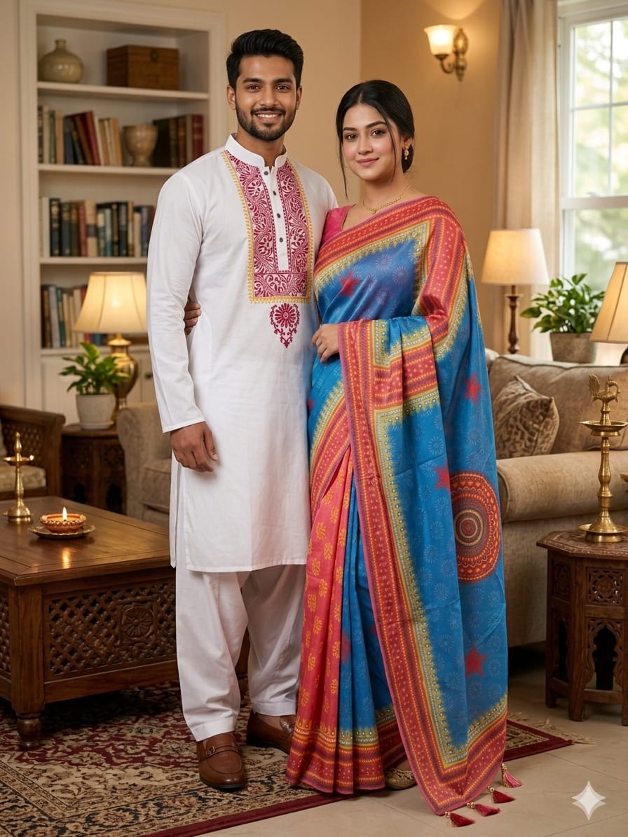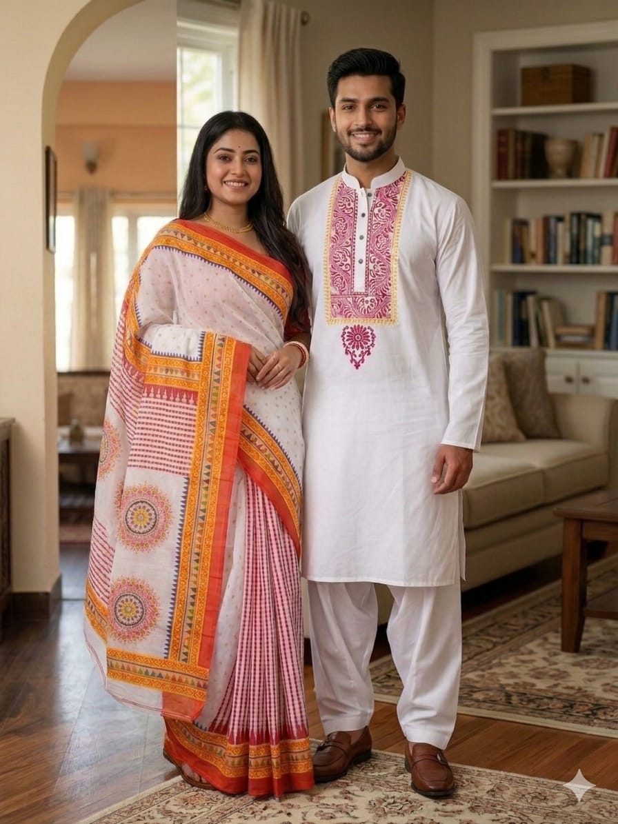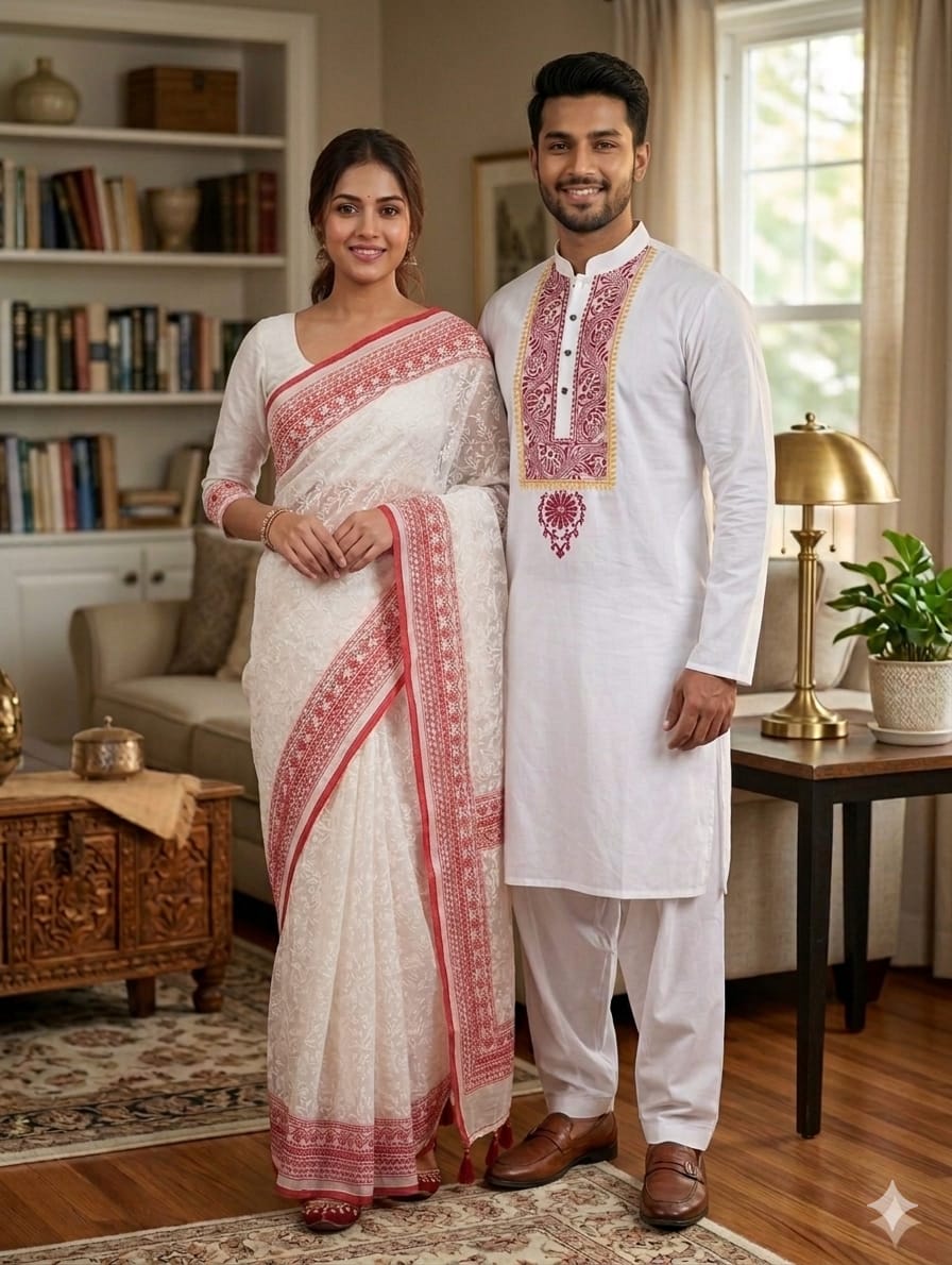 বৈশাখের কাপল ড্রেস সৌন্দর্য আর স্টাইলিশ পাঞ্জাবি,
