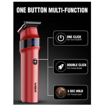 The VGR V987 Beard Trimmer 2000mAh is a professional cordless beard trimmer. It uses a red stainless steel blade trimmer and supports USB Type-C charging, trimmer mode, with a strong turbo mode hair trimmer setting.